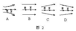 9.四种电场的电场线如图2所示.一正电荷q仅在电场力作用下由M点向N点作加速运动,且加速度越来越大.则该电荷所在的电场是图中的 [ ]