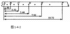 13、某同学在研究小车的运动实验中,获得一条点迹清楚的纸带,如图1-4-2所示,已知打点计时器每隔0.02s打一个点,该同学选择了A、B、C、D、E、F六个计数点,测量数据如图中,单位是厘米.
