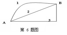 6、如图所示,一物体沿3条不同的路径由A运动到B,则沿哪条路径运动时的位移较大( )