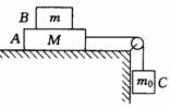 A、B、C三物块质量分别为M、m和m0,作如图所示连结,绳子不可伸长,且绳子和滑轮的质量、滑轮的摩擦均可不计.若B随A一起沿水平桌面做匀速运动,则可以断定.