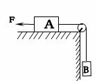 19.如图所示,A、B为两木块,质量分别是mA=0.5千克,mB=0.2千克,A放置在水平桌面上,与桌面的摩擦系数为0.2。用一轻绳绕过无摩擦的滑轮与B相连,为使A 保持静止,则水平向左的拉力F的最大值是 N(设最大静摩擦力等于滑动摩擦力,
