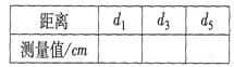 ③实验中,记录小车做匀变速运动的纸带如图所示,在纸带上选择标为0-5的六个计数点,相邻的两个计数点之间还有四个点没有画出.纸带旁并排放着带有最小刻度为毫米的刻度尺,零点跟“0”计数点对齐.由图可以读出1,3,5三个计数点跟“0”点的距离d1,d3,d5,请将测量值填人右表中.
