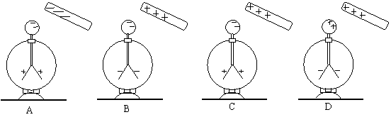 2.将经丝绸摩擦过的玻璃棒靠近不带电的验电器,验电器的箔片张开。下列哪个图是正确的 ( )