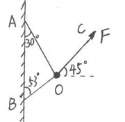 为G的小球被轻绳OA,OB和OC悬挂在O点,其中OB与竖直方向成53度角,OA与竖直方向成30度角,OC与水平方向成45度角,现要求小球仍然静止在O点,并且各绳方向不变且不能松弛,求作用在OC上的拉力F的大小范围