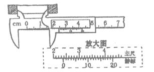 (2)游标卡尺的最小分度为1mm,游标上有20个小的等分刻度,用它测量一工件内径,如上图乙所示,该工件的内径为_____________cm。