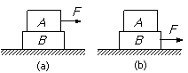 A、B两物块叠放在水平面上,若对物块A施加水平拉力F,如图(a),A、B均静止不动;若将力F作用于物块B,如图(b),则( )