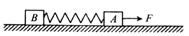 如图所示,完全相同的两物块A、B,质量均为1kg,与地面间的动摩擦因数均为0.2,它们之间连接有一劲度系数为100N/m的轻弹簧.整个系统置于水平地面上静止不动,弹簧处于原长。现有一水平向右的变力F作用于物块A上,F从0开始,缓慢增大到3N时,轻弹簧的伸长量为