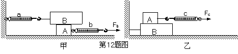 (2)若A和B的重力分别为100N和150N,当甲中A被拉动时,弹簧测力计a示数为60N,b示数为110N,则A、B间的动摩擦因数为 。(2分)