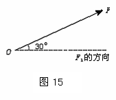 22.(7分)把一个力分解为两个力F1和F2,已知合力为F=40 N,F1与合力的夹角为30 °,如图15所示,若F2取某一数值,可使F1有两个大小不同的数值,则F2大小的取值范围是什么?
