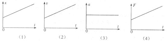 11.下列各图中,图(1)是甲物体的位移-时间图象;图(2)是乙物体的速度-时间图象;图(3)是丙物体的加速度-时间图象;图(4)是丁物体所受合力随时间变化的图象。四幅图的图线都是直线,由图可以判定