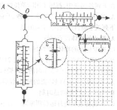 将橡皮筋的一端固定在A点,另一端拴两根细绳,每根细绳分别连着一个量程为5N、最小刻度是0.1N的弹簧测力计。沿着两个不同方向拉弹簧测力计,使橡皮筋的活动端拉到O点时,两根细绳互相垂直,如图所示。