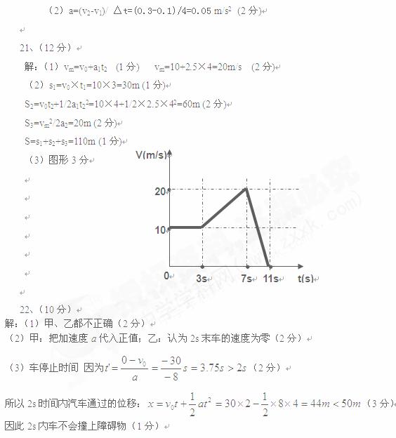 V2=l/△t2=0.03/0.1=0.3m/s (2分)