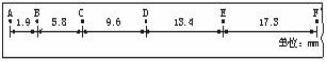 某位同学在做探究自由落体加速度实验中,使用交流电频率是50Hz,从打出的几条纸带中,挑出较为理想的一条纸带。开始打的第一个点标为A,随后连续的几个点依次标记为点B、C、D、E和F,测量出各点间的距离,如图所示。