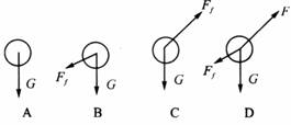5、足球运动员已将足球踢向空中,如图所示,下列描述足球在向斜上方飞行过程中某时刻的受力图中,正确的是(G为重力,F为脚对球的作用力,Ff为空气阻力)( ).