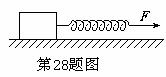 28.如图所示,轻质弹簧的劲度系数为k=20N/cm,用其拉着一个重为200N的物体在水平面上运动,当弹簧的伸长量为4cm时,物体恰在水平面上做匀速直线运动,求物体与水平面间的滑动摩擦系数.当弹簧的伸长量为6cm时,物体受到的水平拉力有多大?这时物体受的摩擦力有多大?如果在物体运动的过程中突然撤去弹簧物体在水平面继续滑行,这时物体受到的摩擦力多大?