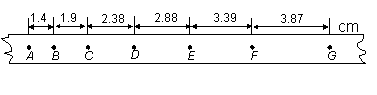 ⑶小车拖动纸带运动,打出的纸带如图所示.选出A、B、C、D、E、F、G,7个计数点,每相邻两点间还有4个计时点(图中未标出)。已知各点间位移。则: