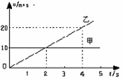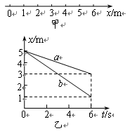13.a、b两物体沿同一直线运动,为了定量描述它们的运动情况,建立了一直线坐标系,如图甲所示。它们的位置坐标随时间的变化关系如图乙所示,则下列说法中正确的是 ( )