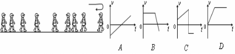 7. 如图所示,一同学沿一直线行走,现用频闪照相记录了他行走中9个位置的图片,观察图片,能比较正确反映该同学运动的速度-时间图像的是 ( )