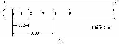 处理数据:选择一条最清晰的纸带,为了便于测量,舍掉开头一些过于密集的点迹,找一个适当的点当做计时起点,部分纸带如图(2).计算出打下1,2,3,4……各点时的瞬时速度,作出