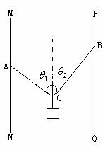 的轻细绳,A、B两端分别固定在MN、PQ上.一不计大小的轻滑轮C悬挂一重16N的物体放在绳上静止.(摩擦不计)