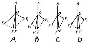 表示用一个测力计拉橡皮筋时的力,则如右图中符合实验事实的是