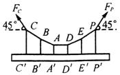 ,又已知两端钢缆与水平成45°角,若钢杆自重不计,为使每根钢杆承受的拉力相同,试求每根钢杆的长度应为多少米?
