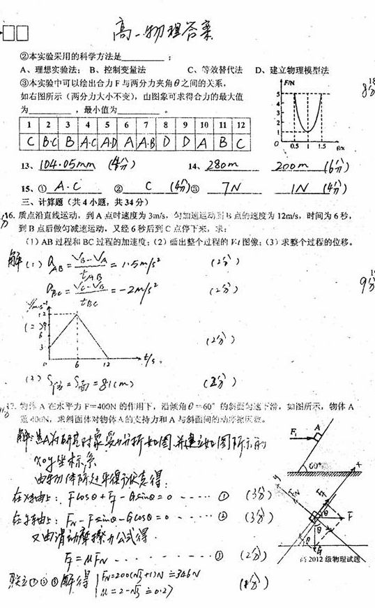 5、如图所示,将一个已知力F分解为F1和F2,已知F = 10N,F1与F的夹角为37
