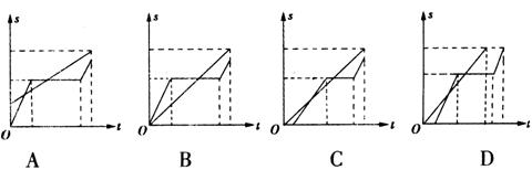 6、一个龟兔赛跑的故事:龟、兔从同一地点出发,发令枪响后龟缓慢地向终点跑去,直至到达终点.兔自恃跑得快,让龟先跑了一段时间后,它才开始跑,当它超过龟后便在路旁睡起觉来,醒来一看,龟已接近终点了,于是便奋力追去,但最终还是让龟先到达了终点,据此,我们可以将龟兔赛跑的运动过程用位移--时间图象来表示,正确的是( )