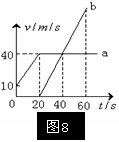 a、b两物体从同一位置沿同一直线运动,它们的速度图象如图8所示,下列说法不正确的是(