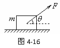 15.如图4-16所示,质量为4 kg的物体静止于水平面上,物体与水平面间的动摩擦因数为0.5,物体受到大小为20 N,与水平方向成30°角斜向上的拉力F