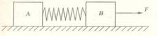 10.木块A,B的重力分别为50N和60N,它们与水平面间的动摩擦因素为0.25(最大静摩擦力可认为等于滑动摩擦力),夹在AB之间的轻弹簧被压缩了2cm,弹簧劲度系数为400N/m,系统置于水平面上静止,现在用F=1N的水平拉力作用在B上,如下图,力F作用后:
