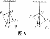 (3)、在《验证力的平行四边形定则》实验中,若甲、乙两同学在实验中作出了图5所示的结果,其中F表示两个分力F1、F2的作图得到的合力,