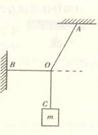 15.如下图所示,轻绳OA的一端系在天花板上,与竖直方向成30°,轻绳OB水平,OB的一端固定在墙上,O处挂一个质量m=3kg的物体,则绳OA和绳OB所受到的拉力各为多大?(g取10N/kg) ![]()