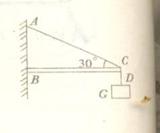 17.如下图,重力为200N的物体,由轻绳悬挂在轻质的水平横梁BC的端点C上,B点由铰链固定,C点由绳AC系住,AC与BC成30度角,求悬绳AC和横梁BC所受到的作用力的大小和方向。