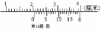 14.如图所示的游标卡尺,游标的 每一小格长_________mm,用该游标卡尺测物体长度可准确到________mm,图示游标卡尺所测物体的读数是_________ cm.