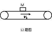 向右运动,一物体M位于传送带上,设M的速度大小为