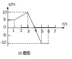 15. 某质点在一条直线上运动,6s内的位移-时间图象如图所示,此质点在第1s内的速度大小为_________m/s,6s内的位移大小为_______m。
