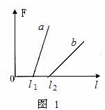 一个实验小组在“探究弹力和弹簧伸长的关系”的实验中,使用两条不同的轻质弹簧a和b,得到弹力与弹簧长度的图象如图1所示。下列表述正确的是