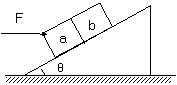 12.如图所示,a、b是两个位于固定粗糙斜面上的正方形物块,它们的质量相等,但与斜面间动摩擦因数不同,F是沿水平方向作用于a的外力,当a、b都在斜面上静止时,则