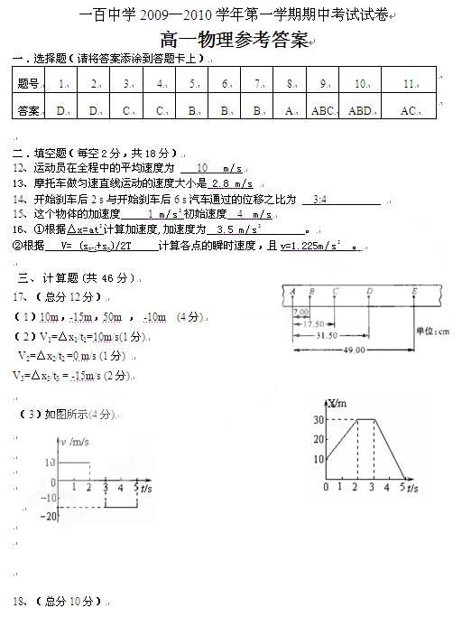 15、一个作匀加速直线运动的物体,头4s内经过的位移是24m,在紧接着的4s内经过的位移是40m,则这个物体的加速度 m/s2 ,初始速度 m/s