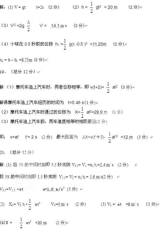 18、小球从某一高度自由下落,不计空气阻力,重力加速度取10m/s2,落地速度20 m/s