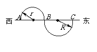 物体沿半径分别为r和R的半圆弧由A点经B点到达C点,如图所示,则它的位移和路程分别是( )