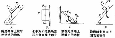 4.下图所示各物体受力分析中不正确的是