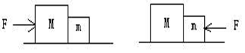 12.如图所示,在光滑水平面上,有两个相互接触的物体,若M>m,第一次用水平力F由左向右推M,两物体间的作用力为N1,第二次用同样大小的水平力F由右向左推m,两物体间的作用力为N2,则