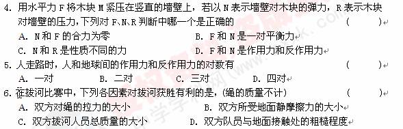 7.在测力计两端各栓一绳,两人都用100N的力各拉一绳,这时测力计的读数和所受合力分别是 ( )