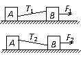 5.如图所示,A、B两木块放在水平面上,它们之间用细线相连,两次连接情况中细线倾斜方向不同但倾角一样,两木块与水平面间的摩擦系数相同,先后用水平力F1和F2拉着A、B一起匀速运动,则 ( )