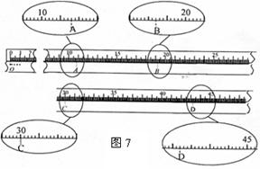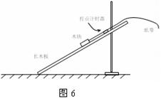 11.(12分) 用铁架台将长木板倾斜支在水平桌面上,组成如图6所示的装置(示意图),测量木块沿斜面下滑的加速度.所提供的仪器有长木板、木块、打点计时器(含纸带)、学生电源,米尺、铁架台及导线、开关等.图7是打点计时器打出的一条纸带,纸带上标注了O点几个计数点:A、B、C、D等,相邻两个计数点间还有4个点没有标出,纸带旁还给出了最小刻度为1mm的刻度尺,刻度尺的零点与O点对齐。已知打点计时器所用交流电源的频率是50Hz.