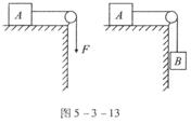 3.如图5-3-13所示,物体A的质量为mA,放在光滑水平桌面上,如果在绳的另一端通过一个滑轮加竖直向下的力F,则A运动的加速度为a.将力去掉,改系一物体B,B的重力和F的值相等,那么A物体的加速度( ).