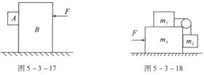 8.如图5-3-17所示,A、B质量分别为0.1 kg和0.4 kg,A、B间的动摩擦因数为0.5,放置在光滑的桌面上,要使A沿着B匀速下降,则必须对物体B施加的水平推力F至少为___________.(g取10 m/s2)