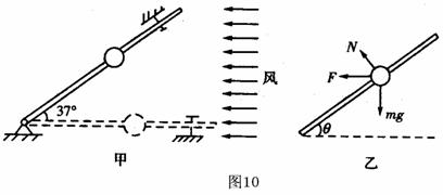 18、风洞实验室中可产生水平方向的、大小可调节的风力。现将一套有小球的细直杆放入风洞实验室,小球孔径略大于细杆直径,如图所示。(1)当杆在水平方向上固定时,调节风力的大小,使小球在杆上做匀速运动,这时小球所受风力为小球所受重力的